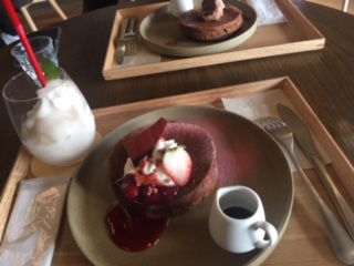私は季節の生パンケーキとカカオパルプスムージーをいただきました。