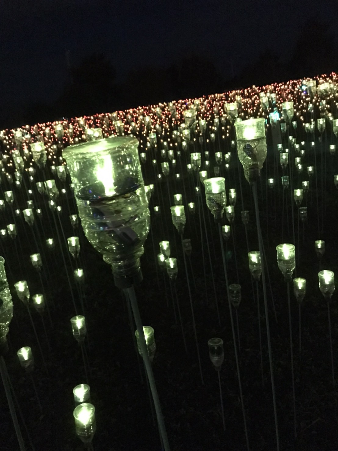 ゆりの里公園のペットボトルで作られたLED照明が変わっていてとてもきれいでした。